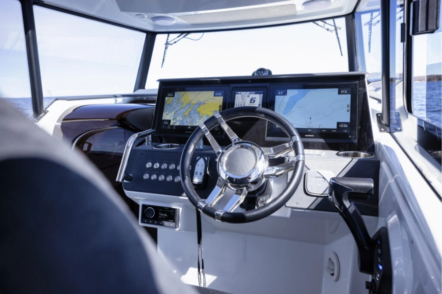 The Quarken 27 Cabin delivers Scandinavian craftsmanship in a compact and highly versatile platform. Designed for boaters who value protection, performance, and intelligent space utilization, this 27-foot cabin cruiser adapts easily to Canadian boating conditions. As a result, it suits both day cruising on Lake Ontario and extended weekend escapes throughout the Great Lakes region.