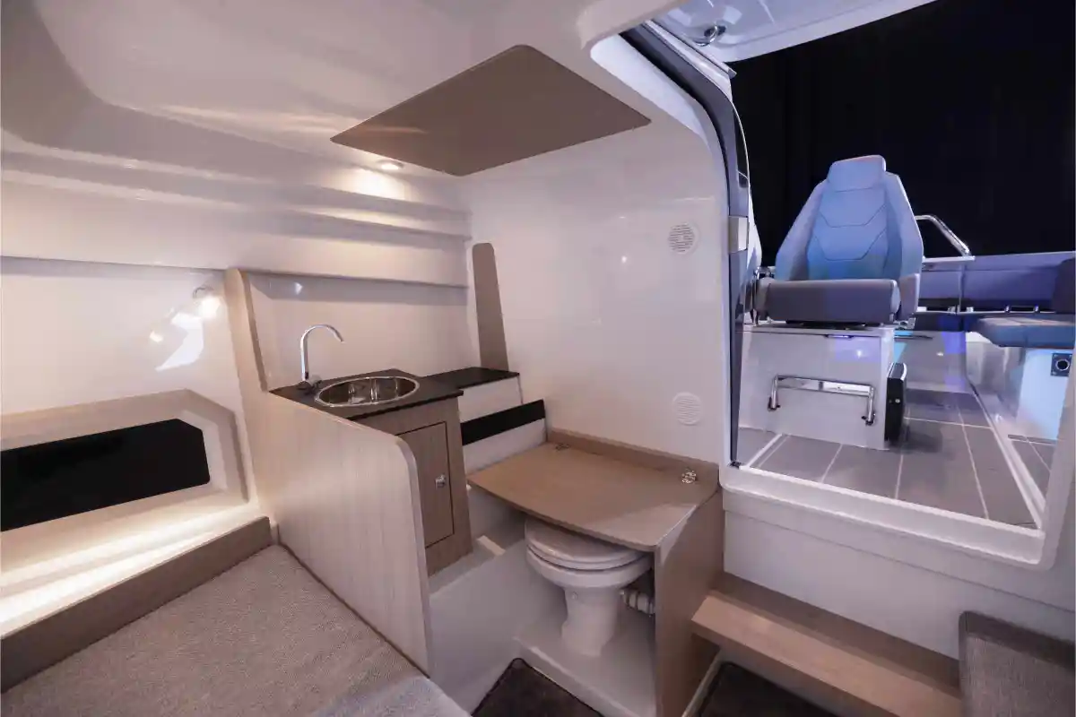 The Quarken 27 Open is the ultimate companion for open air-boating. Get ready to enjoy her captivating driving characteristics, sporty and sleek looks, and versatile and flexible space solutions. The 27 Open is at its best when out day boating. A perfect choice for water sports and other leisure activities out on the sea, lounging anchored in a favourite spot, and a fast and sporty boat to take you safely to your next favoured position.